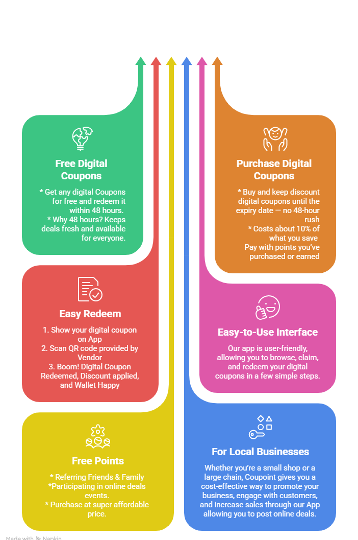 Welcome to Coupoint, Canada’s ultimate digital coupons app that connects shoppers and local businesses in one powerful platform. Whether you’re looking for the best online deals near you, discount offers, or save money, Coupoint makes saving simple, secure, and rewarding.