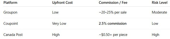 Comparing Coupon Campaign Costs: Groupon vs Coupoint vs Canada Post